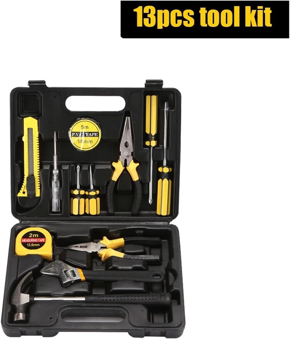 Product Name: 13 pieces of tool setProduct size: 27.5*22*6CMProduct weight: 1.5KGProduct material: Magang13-piece configuration description:1PC utility knife1PC digital electric tester1PC PVC insulation tape2PCS screwdrivers 6*38(±)2PCS screwdrivers 6*100(±)1PC tape measure(2M)1PC 7" combination pliers1PC 8"adjustable wrench1PC claw hammer(8oz) 25CM1PC 6" long pliers 16.5CM1PC blow case==========: Material : PlasticOrigin : Mainland ChinaType : CaseWelcome to our auto parts section! Serve every customer wholeheartedly, letting you shop worry-free and use comfortably~