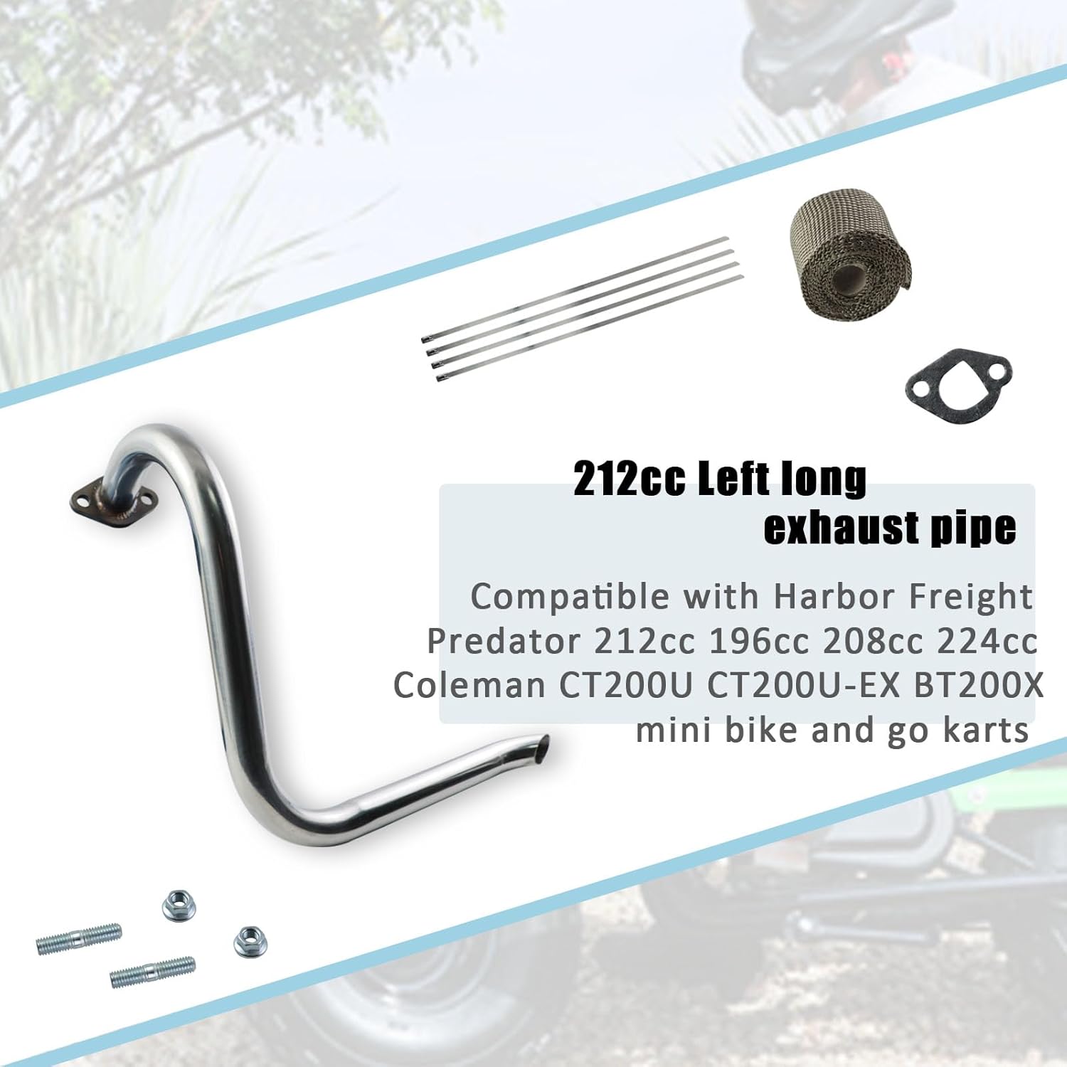 212cc Left Long Exhaust Pipe Compatible with Predator 212cc Engine Coleman CT200U BT200X KT196 Baja MB165 MB200 Go Karts Mini Bike Header Pipe Kit