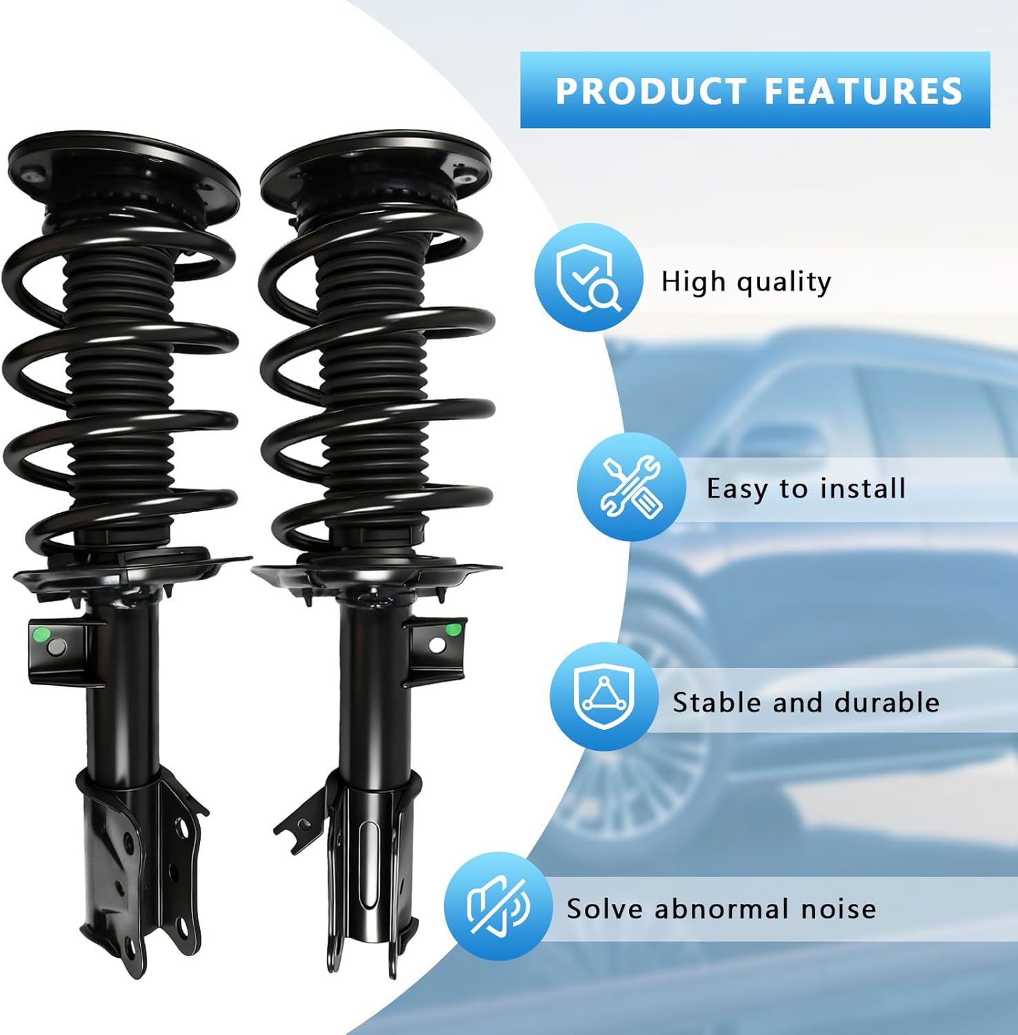 • Smooth Operation: The front air Shock Absorber can effectively solve cornering, high-speed instability, emergency braking, and nodding so that traveling is more stable and safer